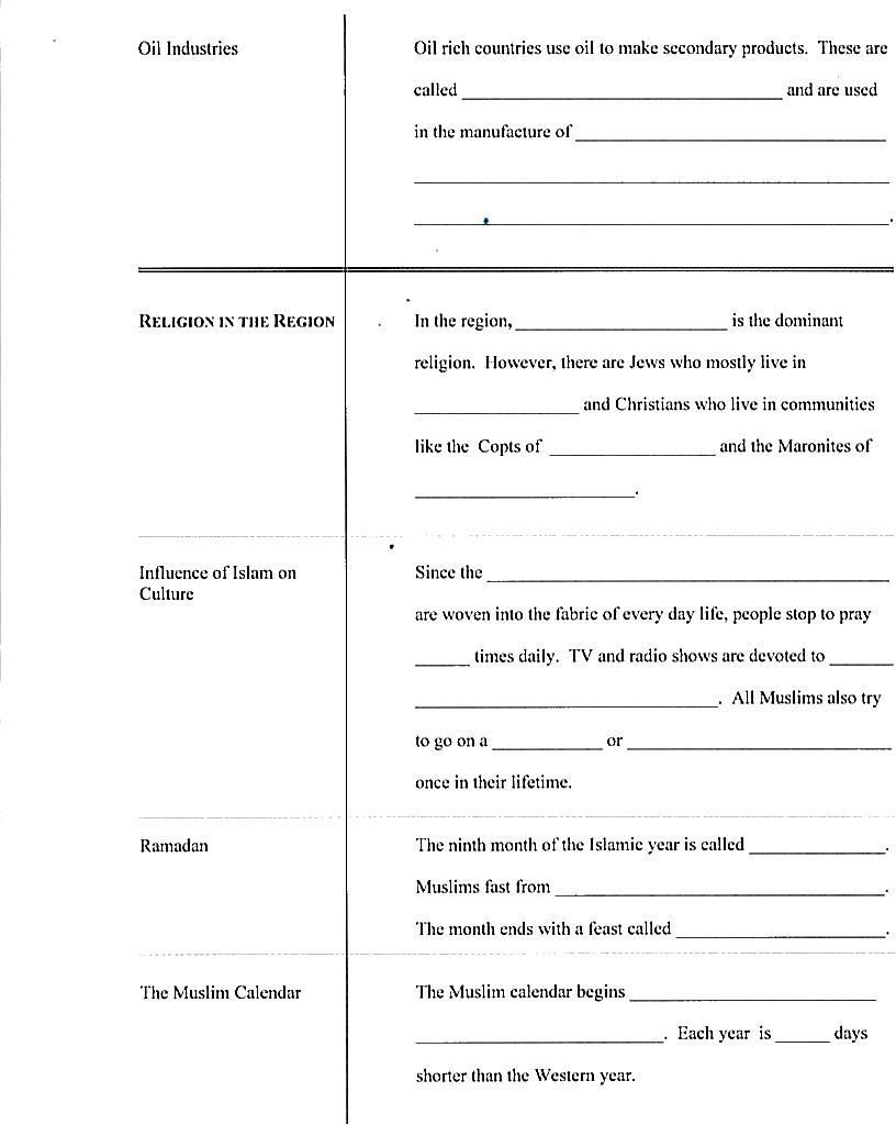 Lesson Log: Today we finished the presentation about the Middle East in most classes. The Bus Eveacuation and misconduct took away from class time in 4th and 5th periods. My notes from the presentation can be printed for any parents (or students) who want a copy.